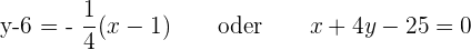 Wir gehen ähnlich wie bei Problem 1 vor. Aber diesmal unter Berücksichtigung der Tatsache, dass die Gleichung der Normalgeraden im Punkt