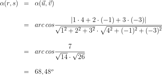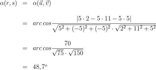3 Wir setzen in die Formel zur Bestimmung des Winkels zwischen zwei Geraden ein und lösen