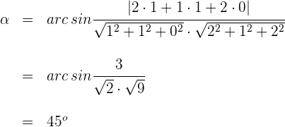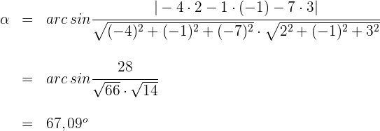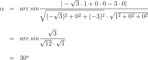 3 Wir setzen in die Formel zur Bestimmung des Winkels zwischen einer Geraden und einer Ebene ein und lösen
