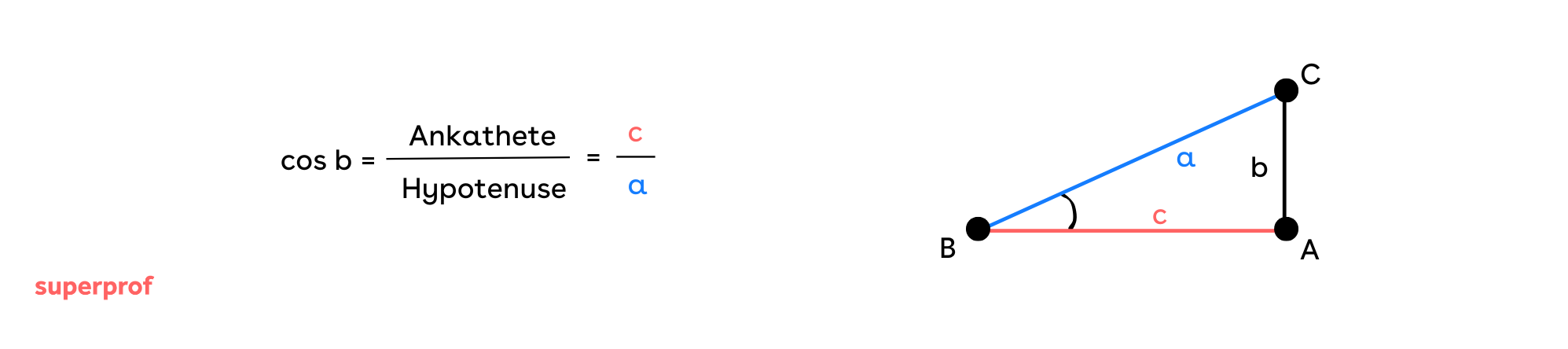 Der Kosinuns des Winkels B ist das Verhältnis der Länge der Ankathete zur Länge der Hypotenuse.