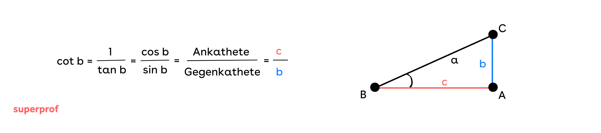 Der Kotangens des Winkels B ist die Kehrwert-Funktion der Tangens-Funktion von B.