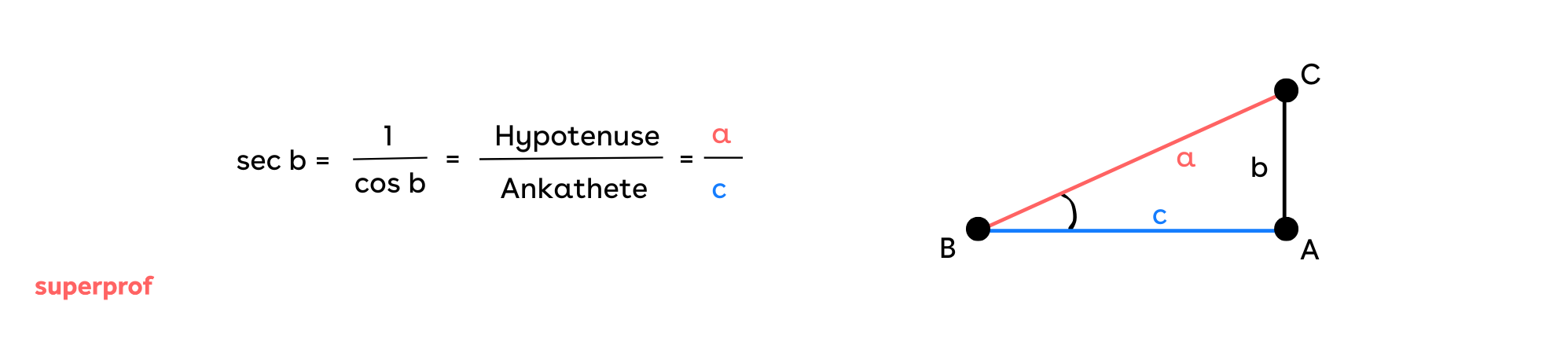 Der Sekans des Winkels B ist die Kehrwert-Funktion der Kosinus-Funktion von B.