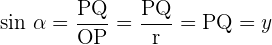 Der Sinus ist die y-Achse von P, d.h. des Punktes, der auf dem Kreis liegt.