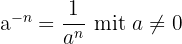 Potenzen mit negativem Exponenten werden wie folgt dargestellt: